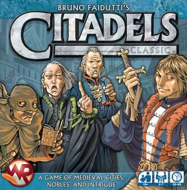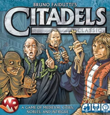 Strategic card game where players use secret roles to build cities and outsmart rivals.